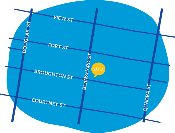 Yalla draws from the rich, full flavours and lively characters of Israel’s abundant street vendors and cafes. Come say hello and try our fresh handmade falafel, delectably tender shawarma and mouthwatering hummus.